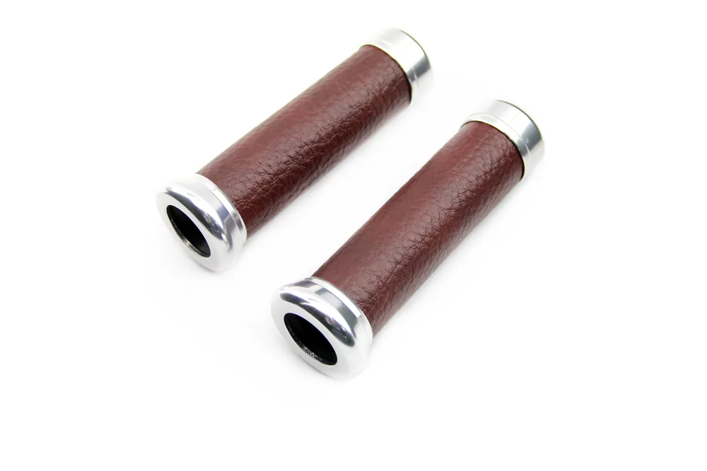 1 Paar Retro Motorrad Lenkergriffe Ø 22mm Kunstleder Hellbraun universal passend Kostenloser Versand