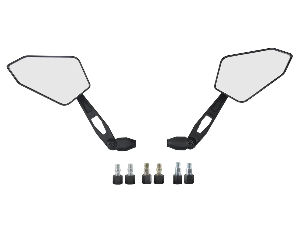 1 Paar Spiegel, schwarze Rückspiegel für Roller Motorrad Quad mit M8 Gewinde inkl. 6 Adapter, Gelenk zum Einstellen des Sichtbereiches Markenware