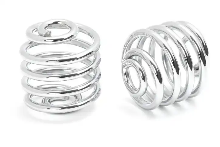 Die Höhe der Federn beträgt ca. 5 cm bei etwa 5 cm Breite. Die Öffnungen an den Federenden haben etwa 16,7 mm Durchmesser.