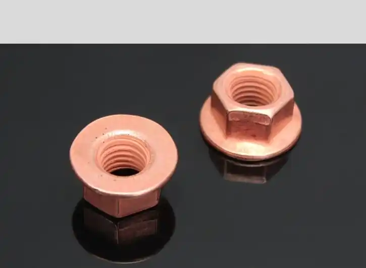 The copper coating significantly reduces the likelihood of the nuts seizing under high temperatures. The integrated flange ensures even load distribution on the mounting surface and eliminates the need for additional washers.