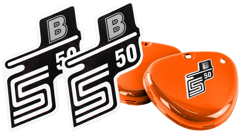 2x Aufkleber Simson S50 B in Silber + weiß für Seitendeckel links und rechts, Sticker, Beklebung, Merch Zertifiziert
