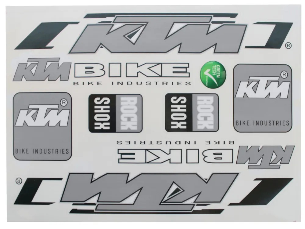 9 Aufkleber KTM Bike Industries Logo Sticker auf Bogen 17,2 x 24,8cm Schwarz-Silber Fahrrad E-Bike Saisonangebot