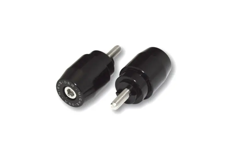 Black anodized handlebar ends made of aluminium for 1 inch handlebar end mirrors. Fits original handlebars on several Honda models and for handlebars. These handlebar ends can be used also to mount all hanging mirrors of our HIGHSIDER-series with 1 inch (25.4 mm) diameter.