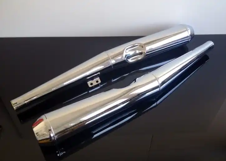 2 piece replica – exhaust silencers (right and left) for BMW 2 valve engine.
