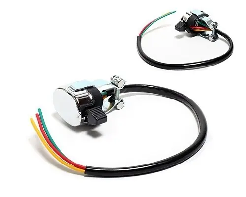 Verchromter, universaler Kippschalter mit drei Schalterstellungen. Der Schalter wird direkt am Lenker verschraubt und kann als Blinkerschalter zum Einsatz kommen. Die Kabel können für eine cleane Optik direkt im 1″ Lenker oder seitlich durch eine Aussparung verlegt werden.