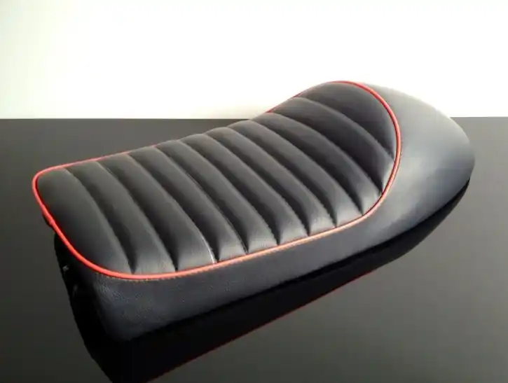 Cafe-Racer SITZBANK, universal, schwarz mit rotem Keder Heißes Angebot