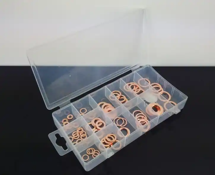 High-quality copper sealing rings in various sizes.