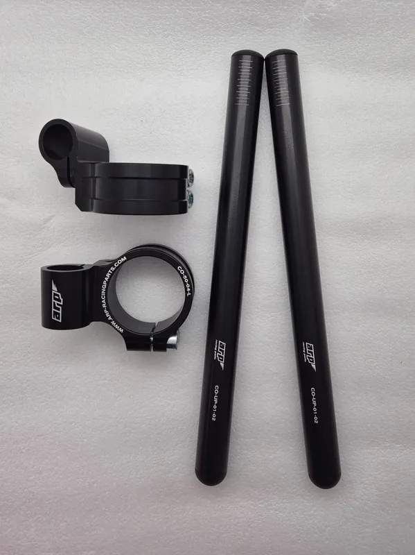 Stummellenker sind eine hervorragende Ergänzung für jeden Rennfahrer. Sie sind leichter, viel stabiler und bieten ein hervorragendes Feedback. Der Fahrer kann außerdem Stummellenker in vielen verschiedenen Positionen verstellen und die Länge des Rohrs einstellen, was bei OEM-Lenkern normalerweise nicht möglich ist. Im Falle eines Unfalls neigen die Lenkerrohre dazu, sich zu verbiegen, anstatt zu brechen, sodass der Fahrer sicher zum Fahrerlager gelangen kann. Der Austausch der Röhre ist unkompliziert.Die mitgelieferten Schrauben sind aus Edelstahl. Die schwarzen, lasergravierten Delrin-Endkappen sind abnehmbar und ermöglichen so eine mühelose Montage des Bremshebelschutzes.Passend für Gabelrohre mit Ø55 mm.