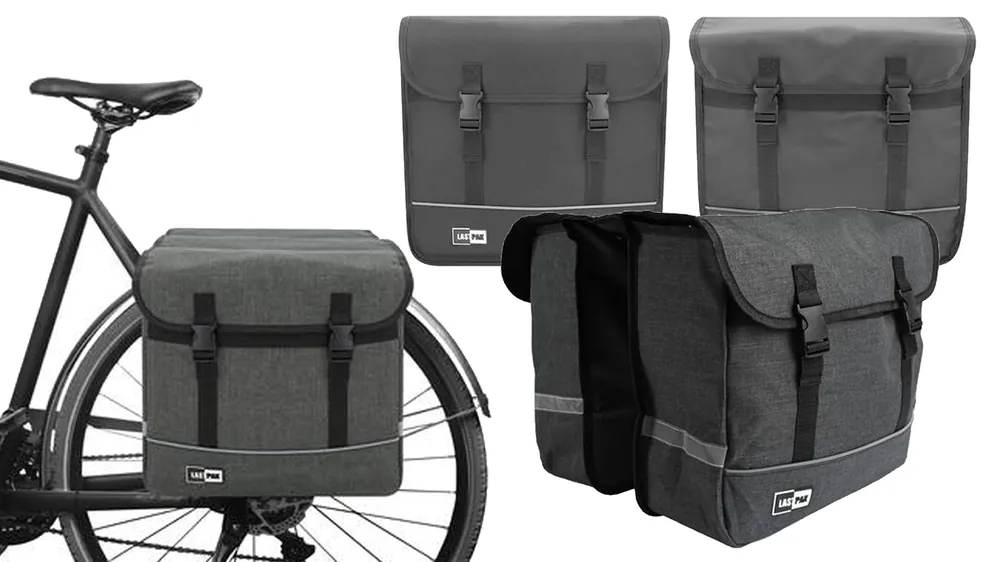 Fahrradtasche, Doppeltasche Fahrrad Gepäckträger, 35 Liter, Befestigung mit Klettverschluss, Canvas Schwarz, Grau oder PVC Schwarz Matt, 36 x 34 x 14 cm Direktkauf
