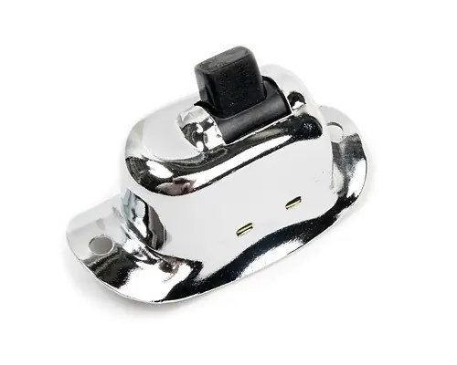 Verchromter Kippschalter mit zwei Schalterstellungen. Der Schalter wird direkt am Lenker verschraubt und kann z.B. als Auf- / Abblendschalter oder für Zusatzbeleuchtung zum Einsatz kommen. Die Kabel können für eine cleane Optik direkt im 1″ Lenker verlegt werden.