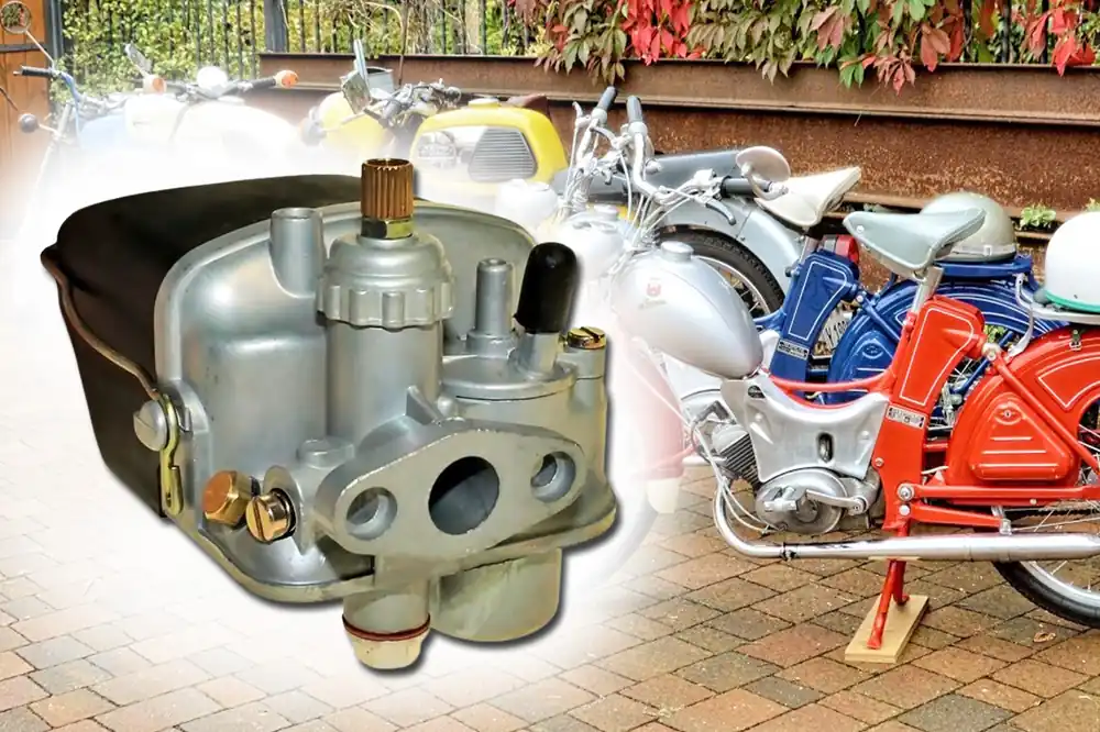Highlight Tuning Vergaser 12mm Durchlass mit Luftfiltergehäuse für 2-Takt DBS, Hercules MK, Sachs 3V / 4V, Sparta Mofa Moped, Nachbau Bing