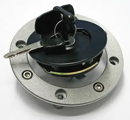 Tankcap for various Suzuki models. Outer diameter approx. 108 mm, 8 screws. Including two keys.