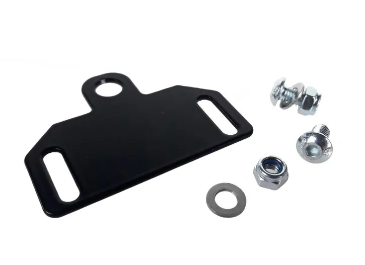Kleine Halterung für Kennzeichenleuchten aus Stahlblech in schwarz.