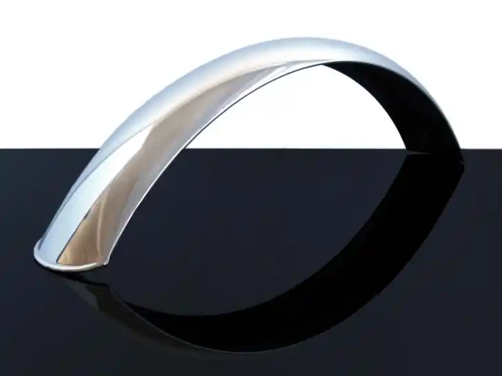 Universell verwendbarer, langer Vorderradfender aus Edelstahl mit polierter Oberfläche.