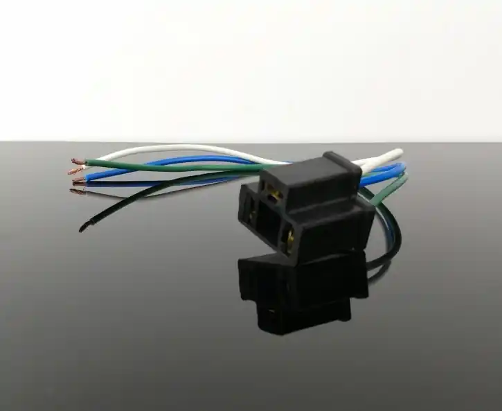 Light bulb base with cables suitable for H4 / Bilux P45T bulbs.