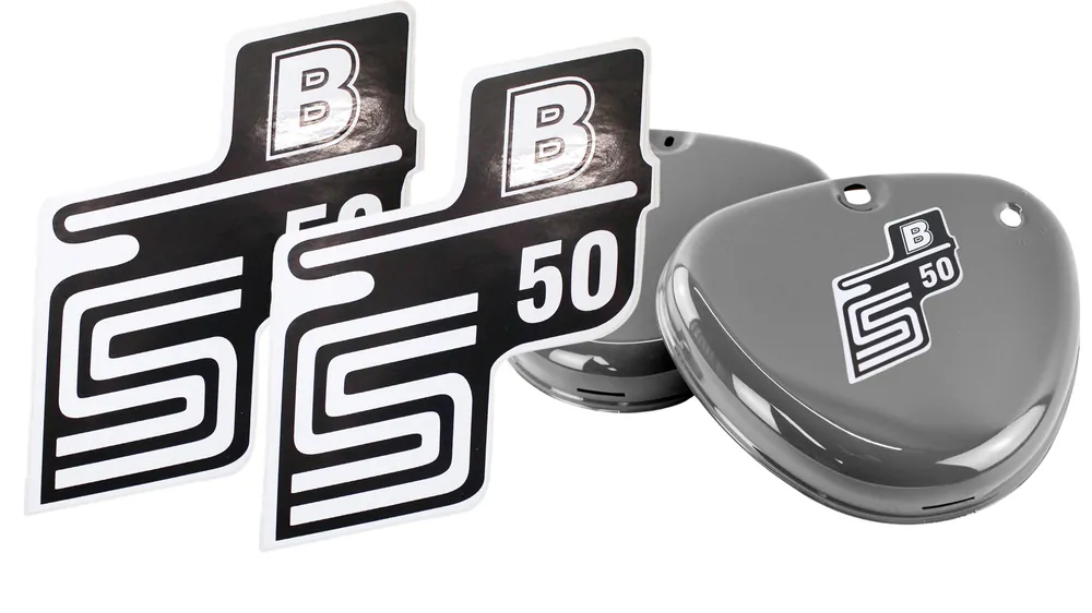 Letzte Chance 2x Aufkleber Simson S50 B in Schwarz + weiß für Seitendeckel links und rechts, Sticker, Beklebung, Merch