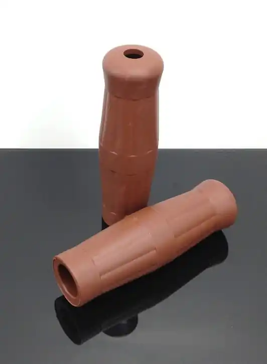 Classic old style grips in brown made of hard rubber with good grip for 22mm handlebars. The handles have a convex shape and can therefore be gripped very well, a relief for the hands on longer journeys. There is a 12 mm opening at each end for attaching handlebar indicators. A pair of handles is included. As is common with motorcycle grips, the inner diameters of the grips differ for the left and right.