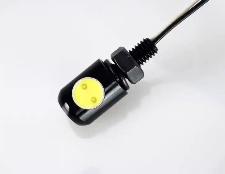 Black license plate light made of metal as a hexagon socket screw with LED technology. One of the smallest approved license plate lights (E4). Despite its small size, which allows it to be installed very inconspicuously on the motorcycle, the license plate light can be used legally.