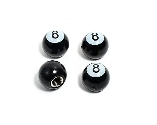 4 coole Ventilkappen für alle gängigen Auto- Motorrad- und Fahrradreifenventile in Form einer Schwarzen Billardkugel. Gut für Umbauten, Fahrrad-Chopper oder andere spezielle Fahrzeuge. Die lässt man an der Tankstelle garantiert nicht liegen. Kugeldurchmesser 19 mm.