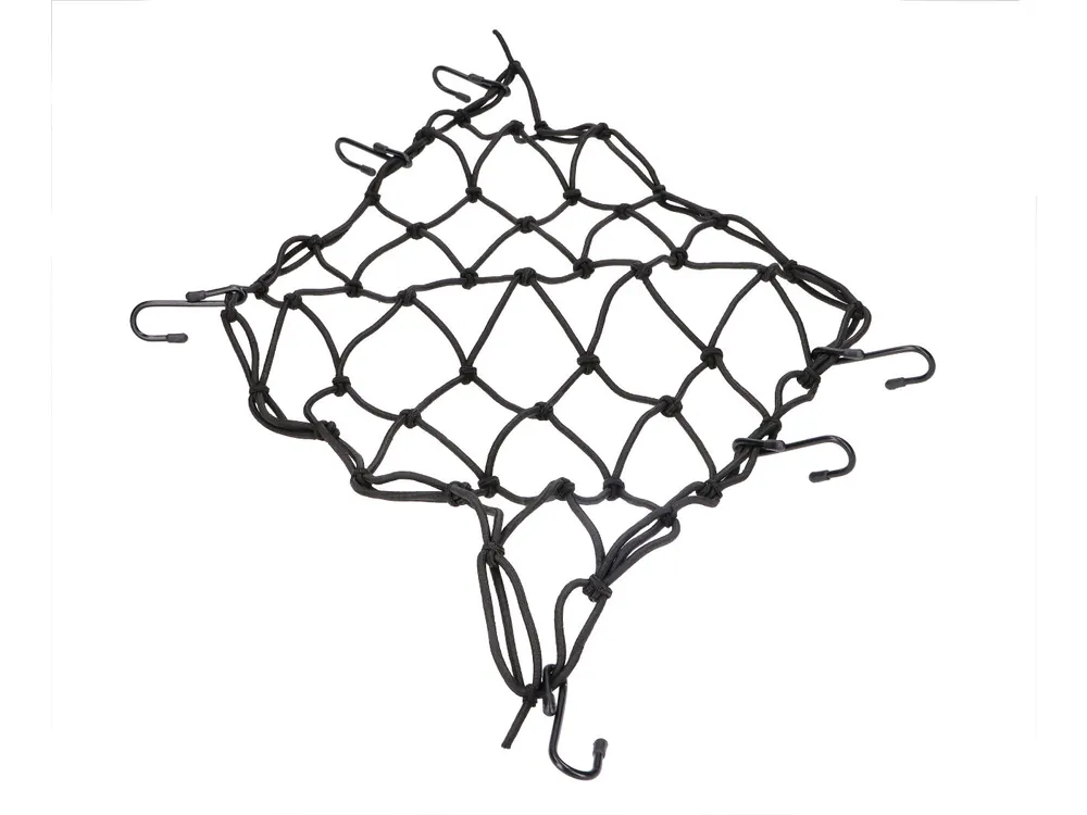 Meistverkauft Fahrradnetz für Korb, Gepäcknetz 25x25cm schwarz mit 6 Haken für Korb und Gepäckträger oder Motorradnetz für Helm Cargonetz Rausfallschutz