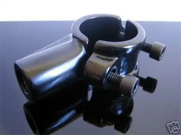 Handlebar mount for mirror with M10 thread aluminum die cast, painted black. Fits on all 22 mm handlebars.