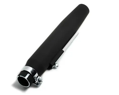 The silencer is supplied with mounting rails and clamps. The total length is approx. 41 cm, the diameter approx. 6.3 cm.