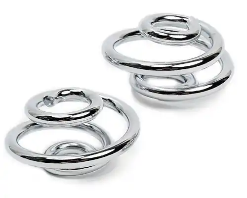 1″ springs chromed for solo seats in old school or bobber style. These barrel springs are the shortest available. They offer smooth comfort at low seat height. The length of the springs is ca. 2,5 cm, the width ca 5 cm. Thickness of the spring steel approx. 5,3 mm. The price is for a set of two springs.
