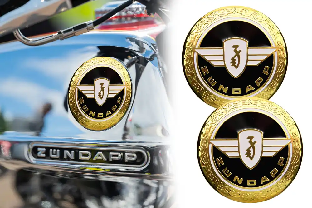 Neuheit [Paket] 2x Zündapp Emblem, Tankemblem, Ø 65mm, Gold amp; Schwarz mit Reliefprägung, selbstklebend