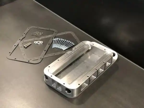 Absolutely high-quality processed oil pan spacer ring made of milled aluminum planal plates.