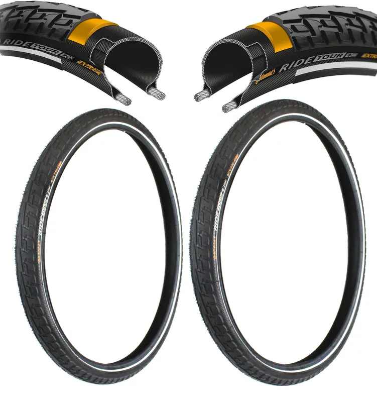 [Paket] 2x Fahrrad Reifen Continental RIDE Tour 1,75 x 26 Zoll, Extra Pannenschutz, Drahtreifen, Reflexstreifen, schwarz, 47-559, E-Bike bis 25km/h Sichere Zahlung