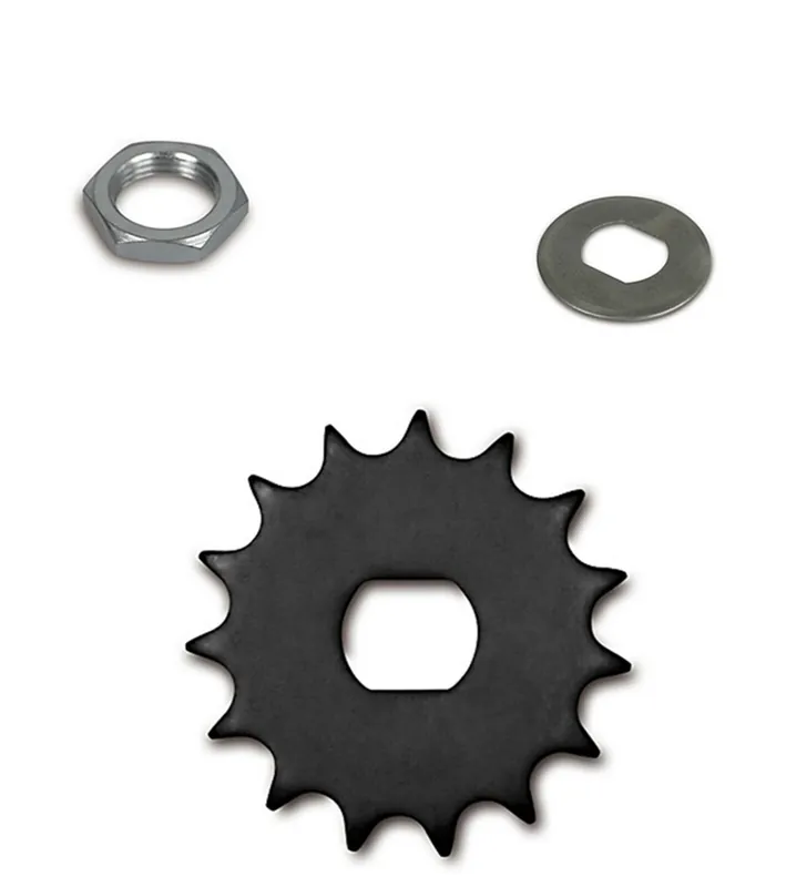 [Paket] 3-teiliges Set aus Ritzel 15 Zahn, Befestigungsmutter und Sicherungsblech für Simson S51, S70, S53, SR50, SR80, Schwalbe KR51/2 Markenware