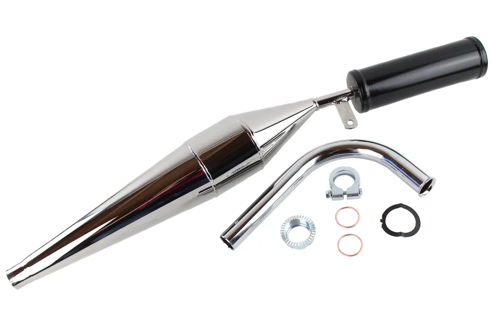 [Paket] Moped Set: Sport Tuning Auspuff Chrom + Krümmer + Krümmermutter-Set für Simson KR51 Schneller Versand