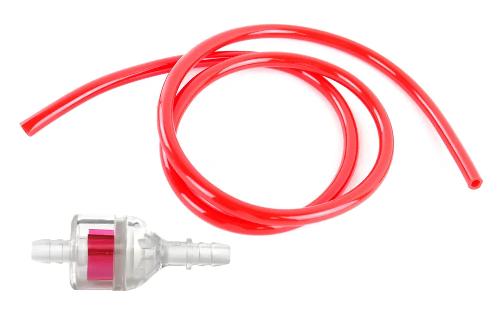 [Paket] Set: Benzinschlauch in Rot, Länge 1m und Benzinfilter – Fast Flow II – transparent und Rot, universal passend, z.B. Simson Wochenendangebot