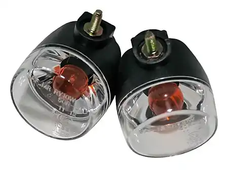 Round, waterproof indicator for hanging mounting. Sturdy plastic housing in black with clear lens, E-marked.