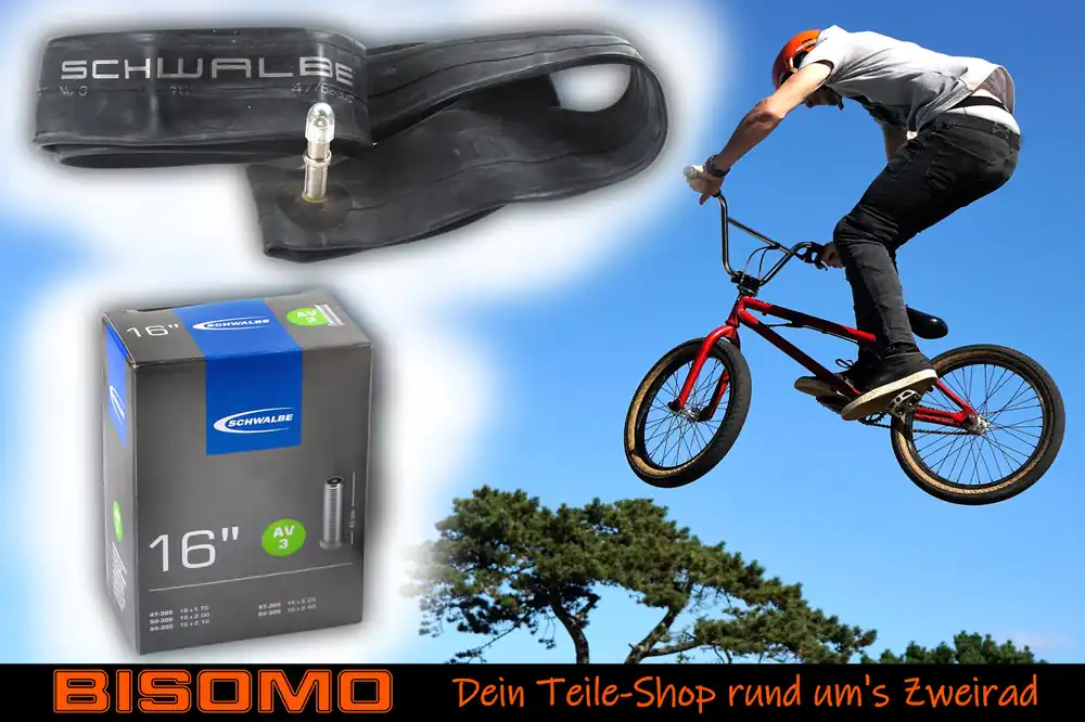Schnäppchen Fahrradschlauch, Schlauch Schwalbe 16 x 1.75-2.40 Zoll ETRTO 47/62-305 Autoventil AV 40mm, Kinderfahrrad, Roller, Laufrad, Simson SL1, Moped-Anhänger, Mofa