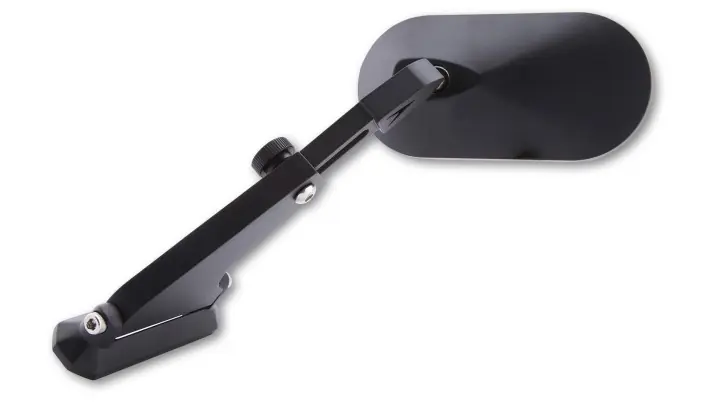Dieser formschöne ovale Spiegel aus leichtem Aluminium in Schwarz bietet viele Einstellmöglichkeiten für bestmögliche Sicht nach hinten. Durch eine praktische Einstellschraube lässt sich der Spiegel ohne Werkzeug um 5 cm in der Länge verstellen. So bekommt man z.B. den Ellenbogen oder das Knie vom Sozius aus dem Sichtfeld.