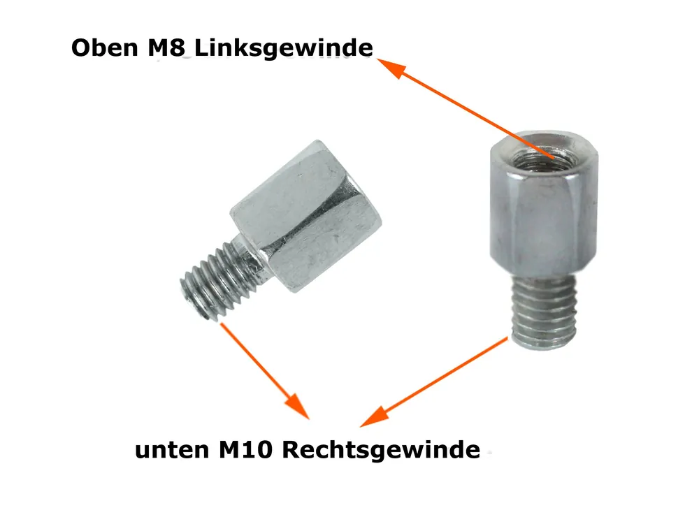 Spiegeladapter Linksgewinde M8 oben Rechtsgewinde M10 unten Motorrad Roller Mofa Rabatt
