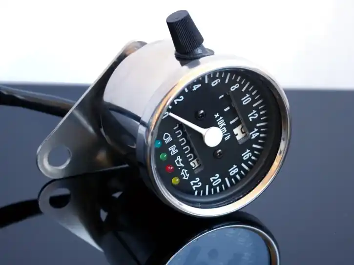 Beautifully designed, absolutely high-quality analogue speedometer in a polished finish