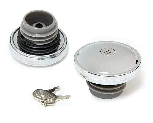 Absolut preisgünstiges Set verchromter, belüfteter, Tankdeckel für Harley-Davidson® Tanks mit spritzwassergeschütztem Schloss und zwei kleinen Schlüsseln. Minimalistische Version für Big Twin Modelle mit Rechts- und Linksgewinde. Passt für Modelle ab 1996. Die rechte Seite ist belüftet. Das Gewinde hat außen einen Durchmesser von ca. 45,80 mm, die Kappe einen Durchmesser von ca. 74 mm.