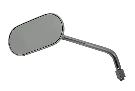 Klassischer Lenkerspiegel mit einem ovalen Kopf aus Aluminium verchromt oder schwarz.