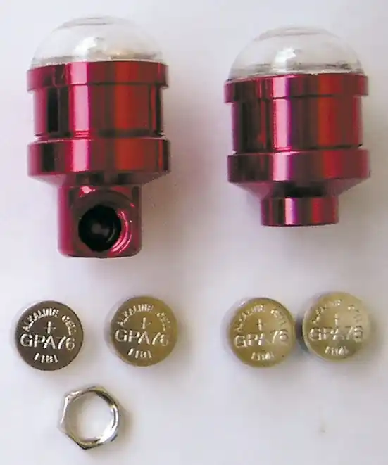Diese Ventilkappen sind aus sehr leichtem Aluminium gefertigt. Einfach auf das vorhandene Ventil schrauben. Die farbigen LED´s geben nur dann Licht ab, wenn das Rad sich dreht. Erzeugt wird ein fluoreszierendes Licht. Wir liefern die LED-Ventilkappen mit gerader, sowie mit 90°-Führung für abgewinkelte Ventile. Die Lieferung erfolgt incl. 2 Knopfbatterien.