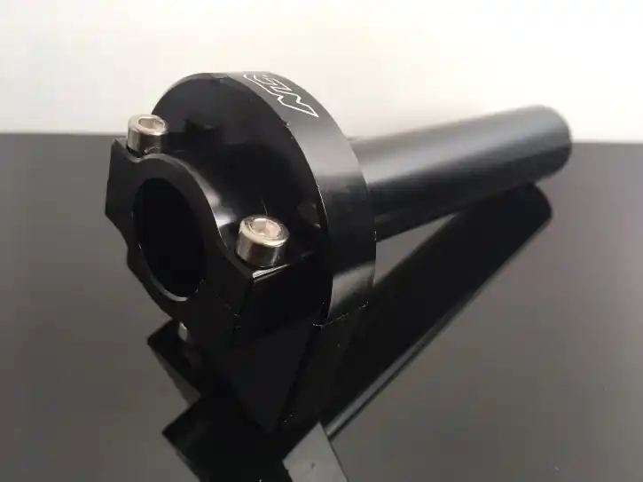 Throttle grip fitting, CNC milled from solid aluminium.