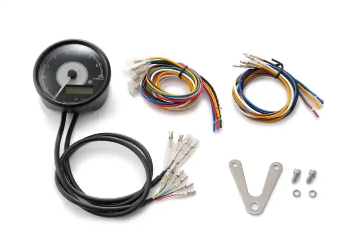 If the motorcycle can not provide a digital signal an active universal speed sensor or a speed pulse converter as well as an induction wire set for determining the speed can be ordered as an option.