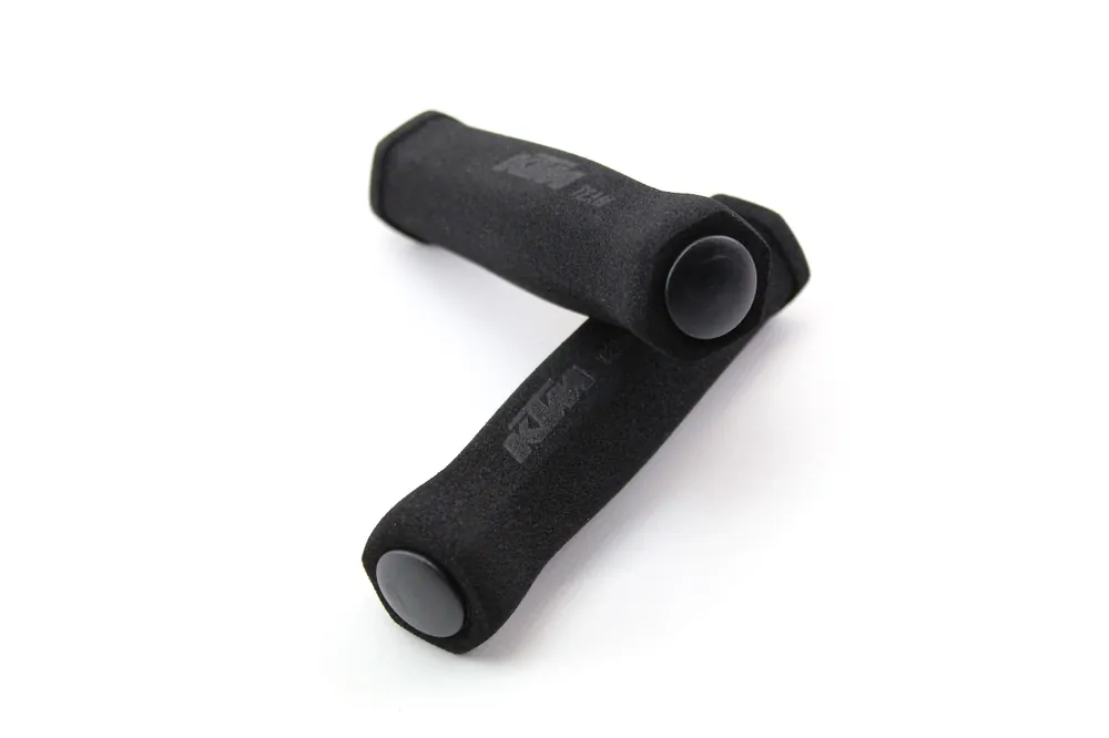 Zertifiziert KTM Fahrrad Lenkergriffe Foam grip w logo 130mm aus Moosgummi in schwarz mit Lenkerstöpseln