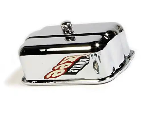 Verchromte Zündkerzenbox, wie es sie in ähnlicher Bauweise als Originalzubehör an Harley-Davidson® Motorrädern in den 40er- und 50er-Jahren gab. Die formschöne Box verleiht einem Klassiker oder Custombike nicht nur den passenden Old School-Look, sie ist darüber hinaus sehr praktisch. Im Inneren befinden sich zwei Klammern zur Aufnahme von zwei Zündkerzen. Die Box wird mit Befestigungsschelle für Rahmen oder Ähnliches geliefert. Ihre Länge beträgt 10 cm die Breite 6,5 cm und die Gesamthöhe ist ca 5,5 cm.